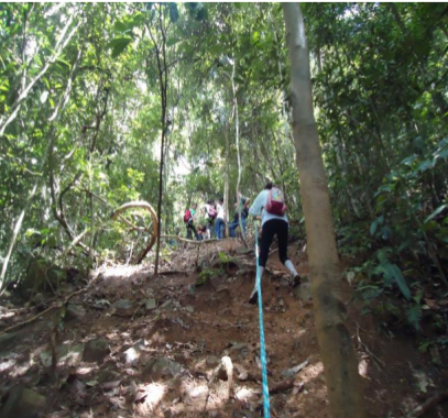 “A referida trilha com extensão de 2,2 km, pode ser percorrida de 1 hora e 10 minutos à 1 hora e 40 minutos, conforme as condições físicas dos visitantes. O trajeto possui um alto nível de dificuldade por apresentar trechos com aclives e declives bastante acentuados sendo necessário inclusive o uso de cordas, além de plantas espinhosas, cortantes e urticantes. A trilha é feita no leito do rio que é muito pedregoso, exigindo esforço para escalar pedras”, destaca a monitora da APA da Serra de Baturité, Patrícia Jacaúna Barbosa.