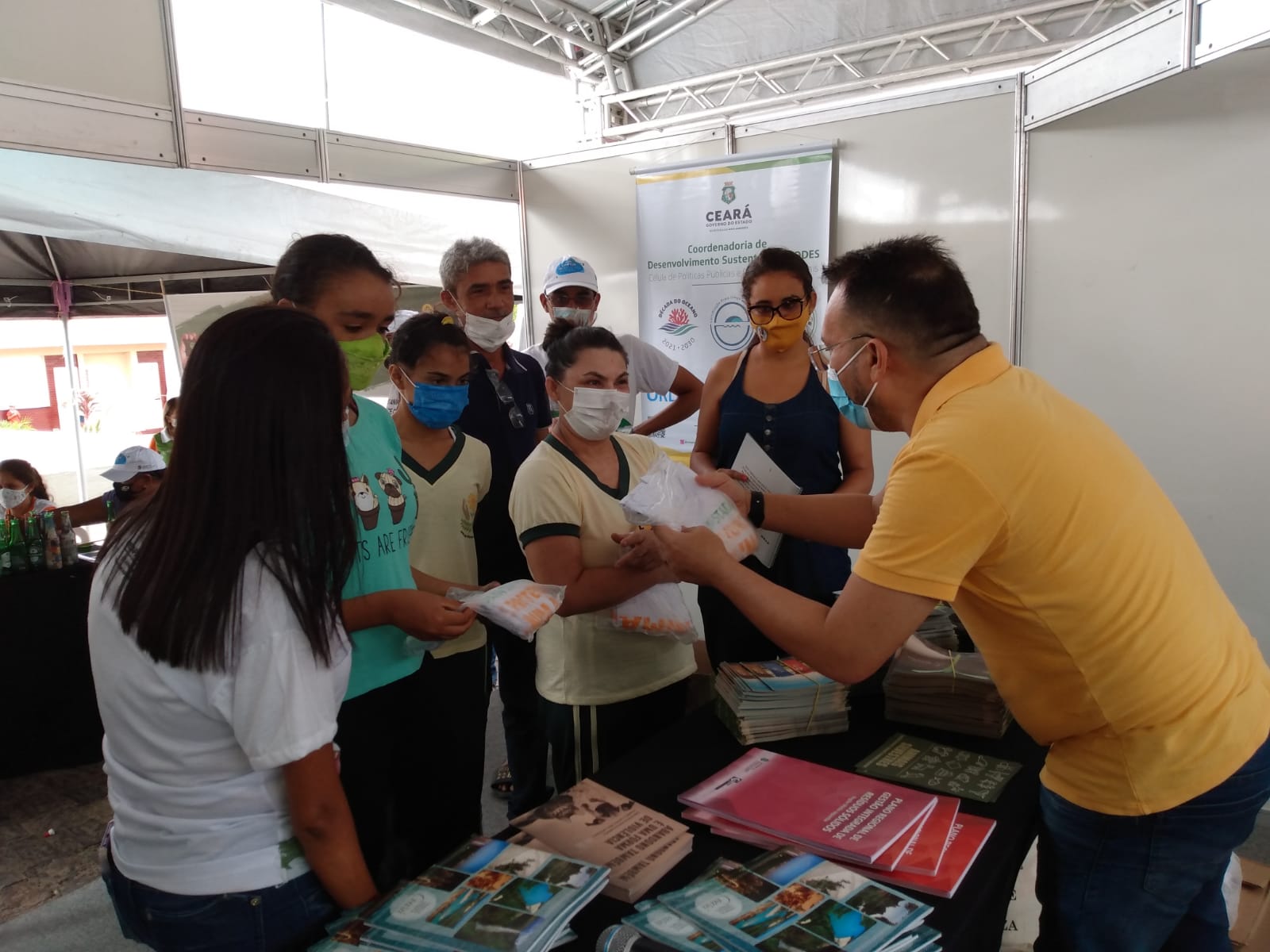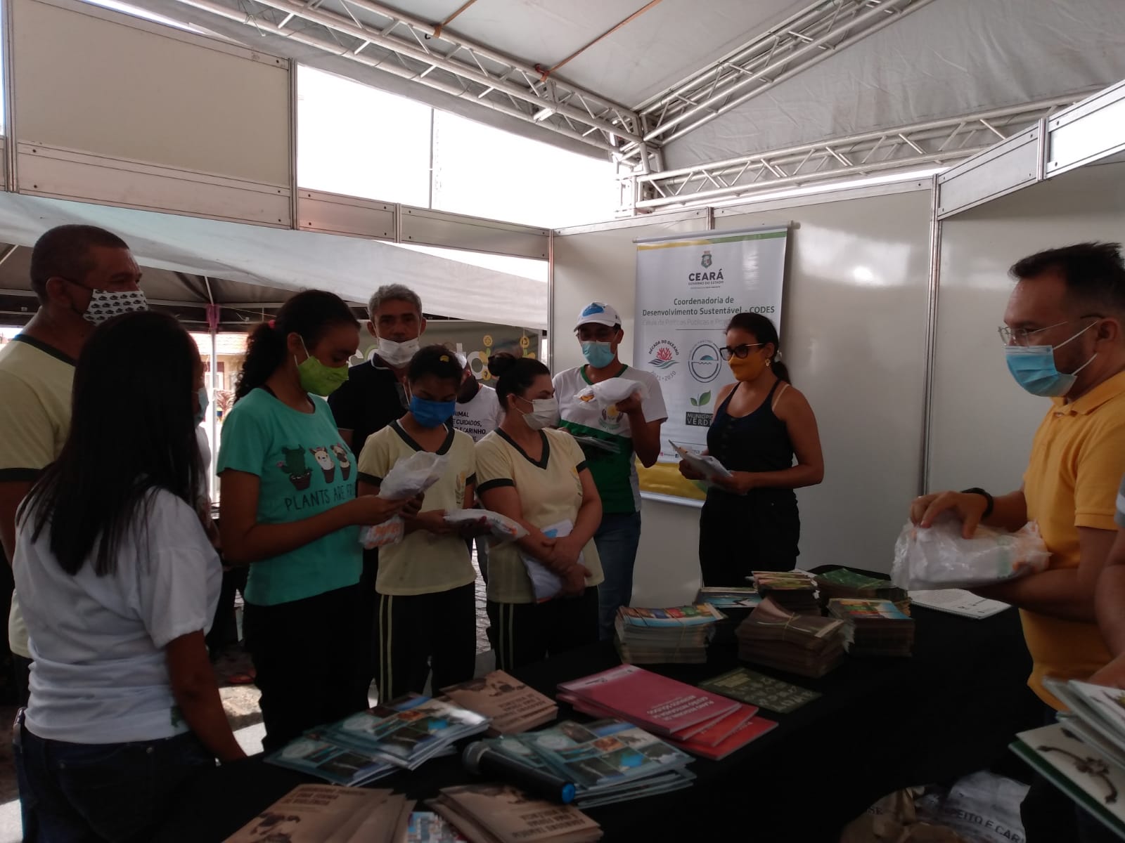 O ecoponto da Secretaria do Meio Ambiente (Sema), montado na Assembleia Itinerante, em Novo Oriente, está recebendo muitos visitantes. Nesta terça-feira (7), recebeu a equipe da Superintendência do Meio Ambiente de Tauá/CE (Supermata Tauá) , os alunos da APAE e um grupo integrantes do programa Agente Jovem Ambiental (AJA), do Governo do Ceará. “A Assembleia Itinerante leva os trabalhos legislativos para o interior do Estado e as secretarias levam serviços, arte, conhecimento e educação ambiental”, disse o coordenador do Time Sema, na ação, Genario Azevedo. A ação é uma promoção da Assembleia Legislativa do Ceará (ALCE).