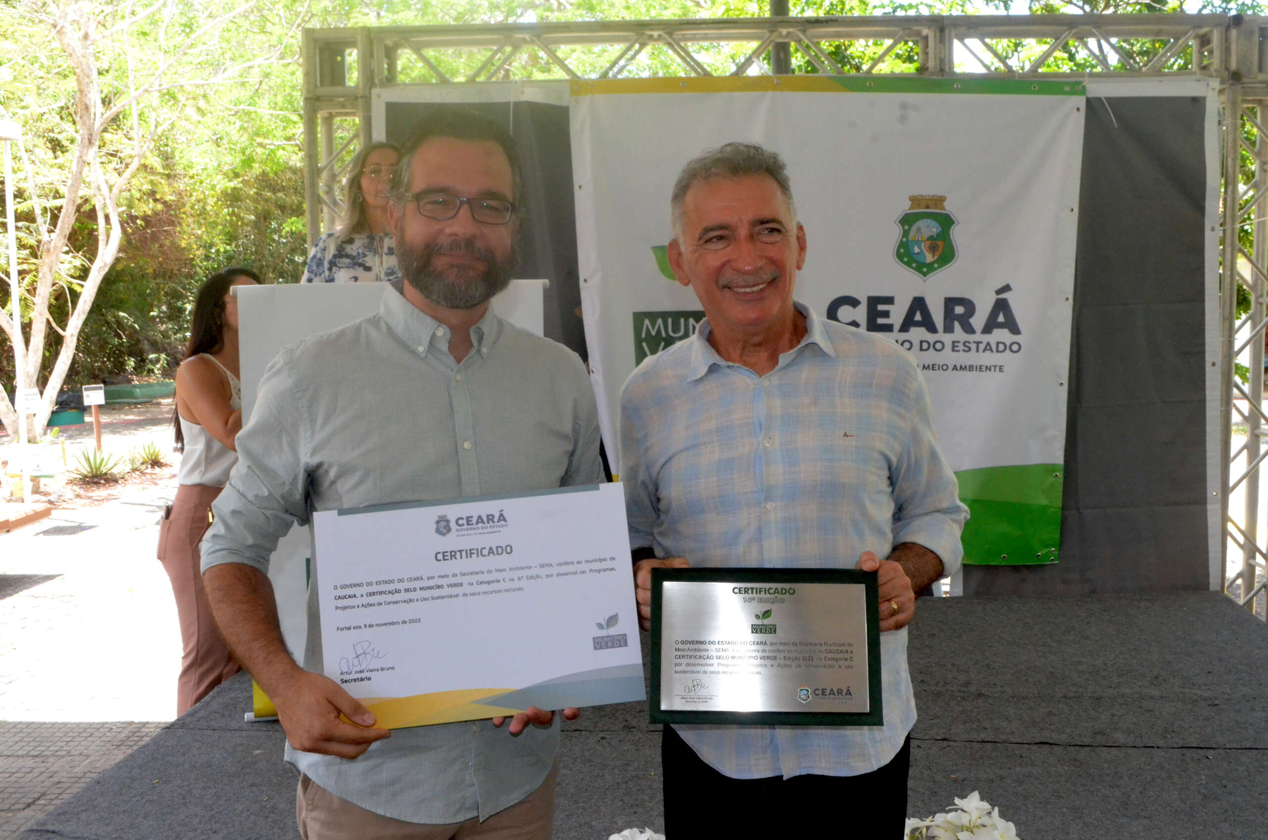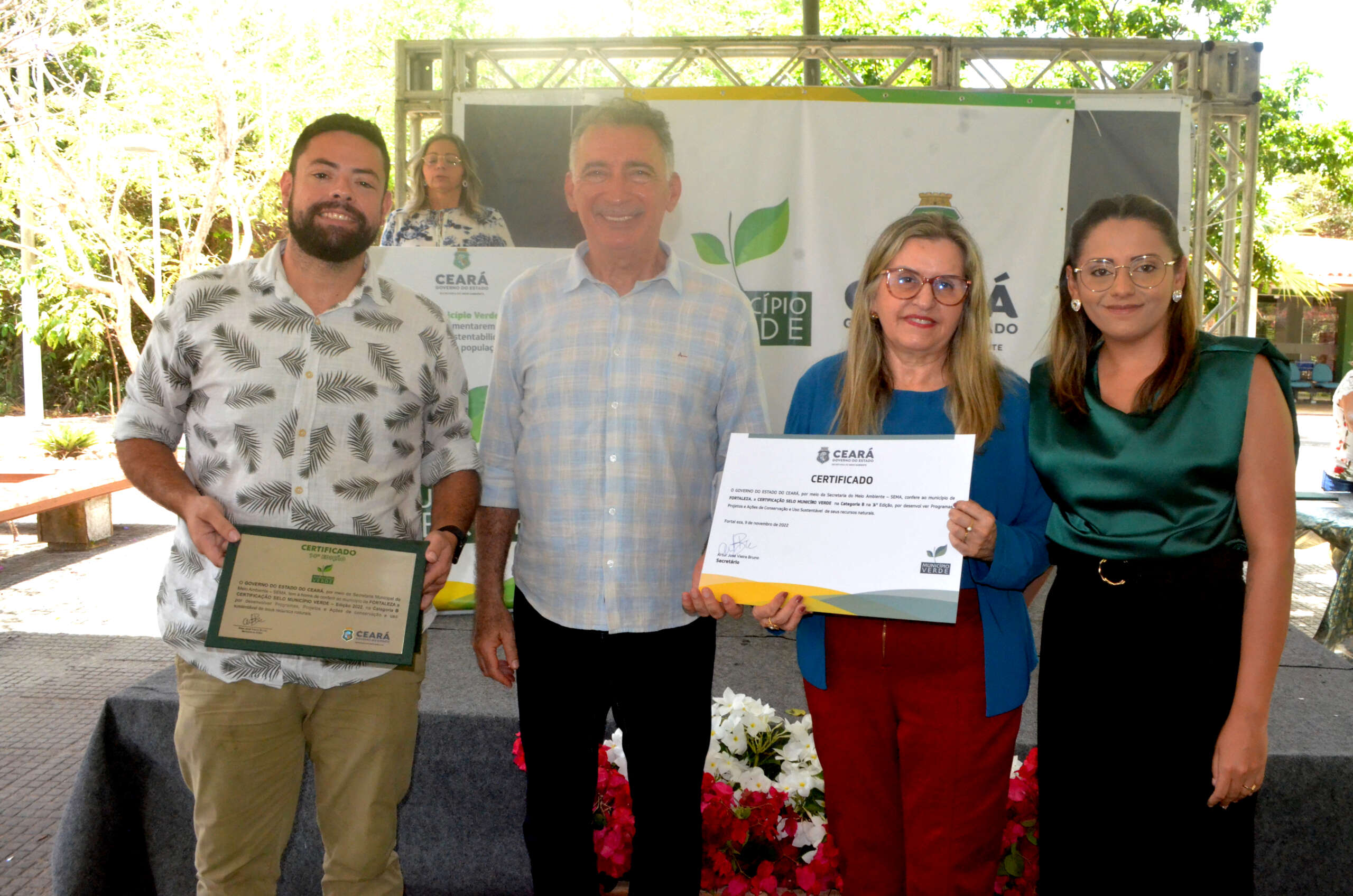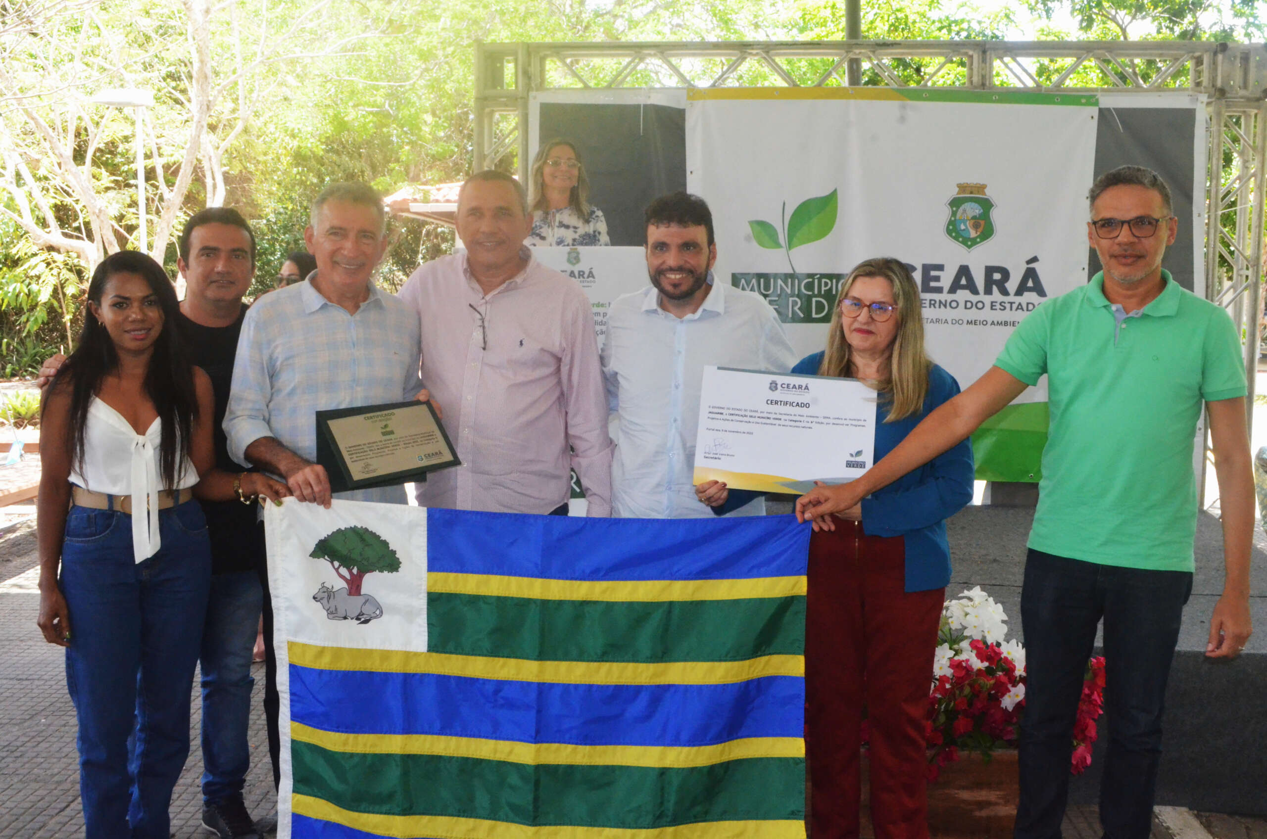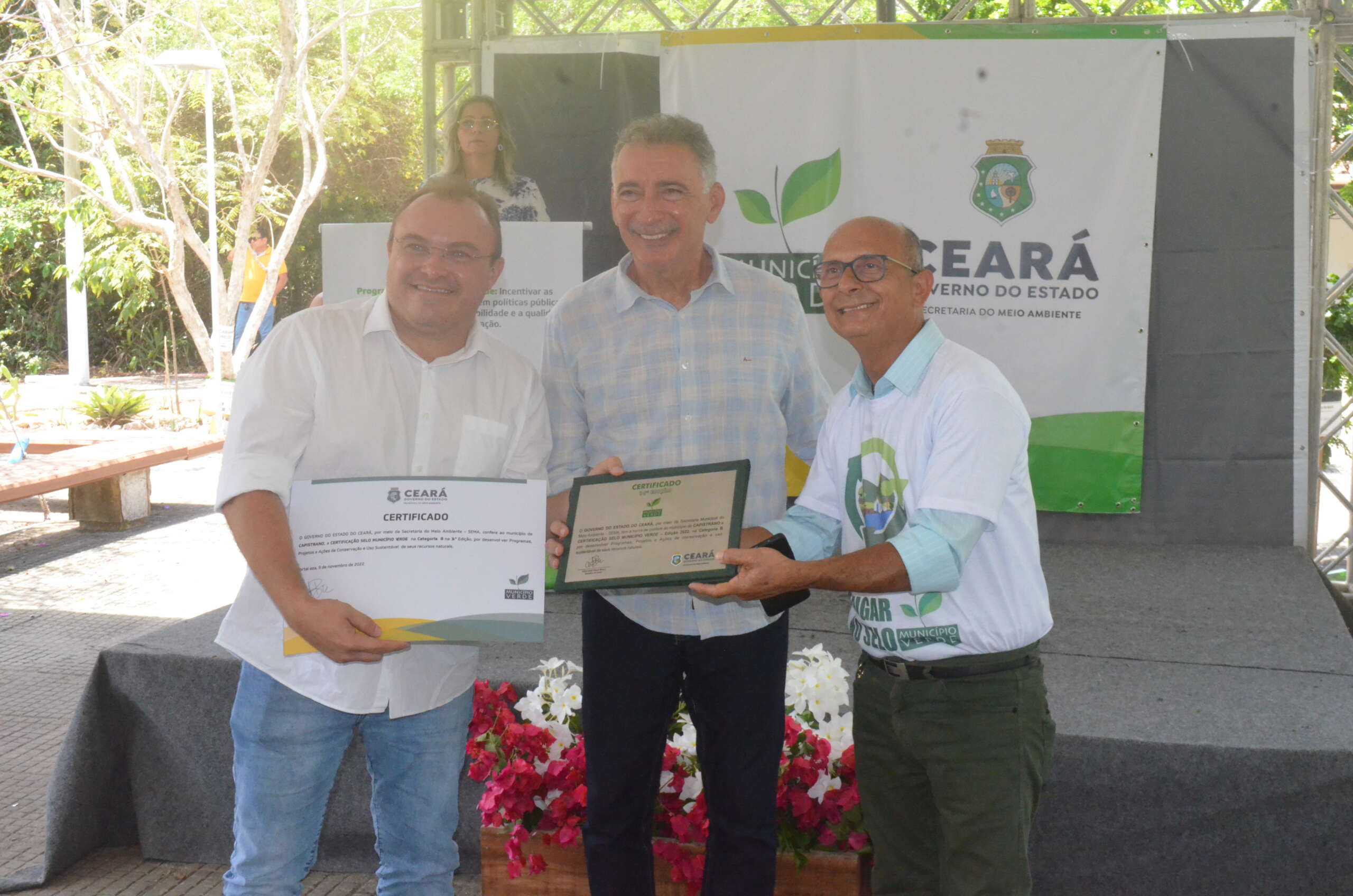Em solenidade que ocorreu no Parque Estadual Botânico, em Caucaia, o governo do Ceará, por meio da Secretaria Estadual do Meio Ambiente (SEMA), entregou, nesta quarta (9), pela manhã, a Certificação Ambiental Selo Município Verde a 26 municípios classificados, na sua 14ª Edição. O evento teve o apoio da CAGECE.