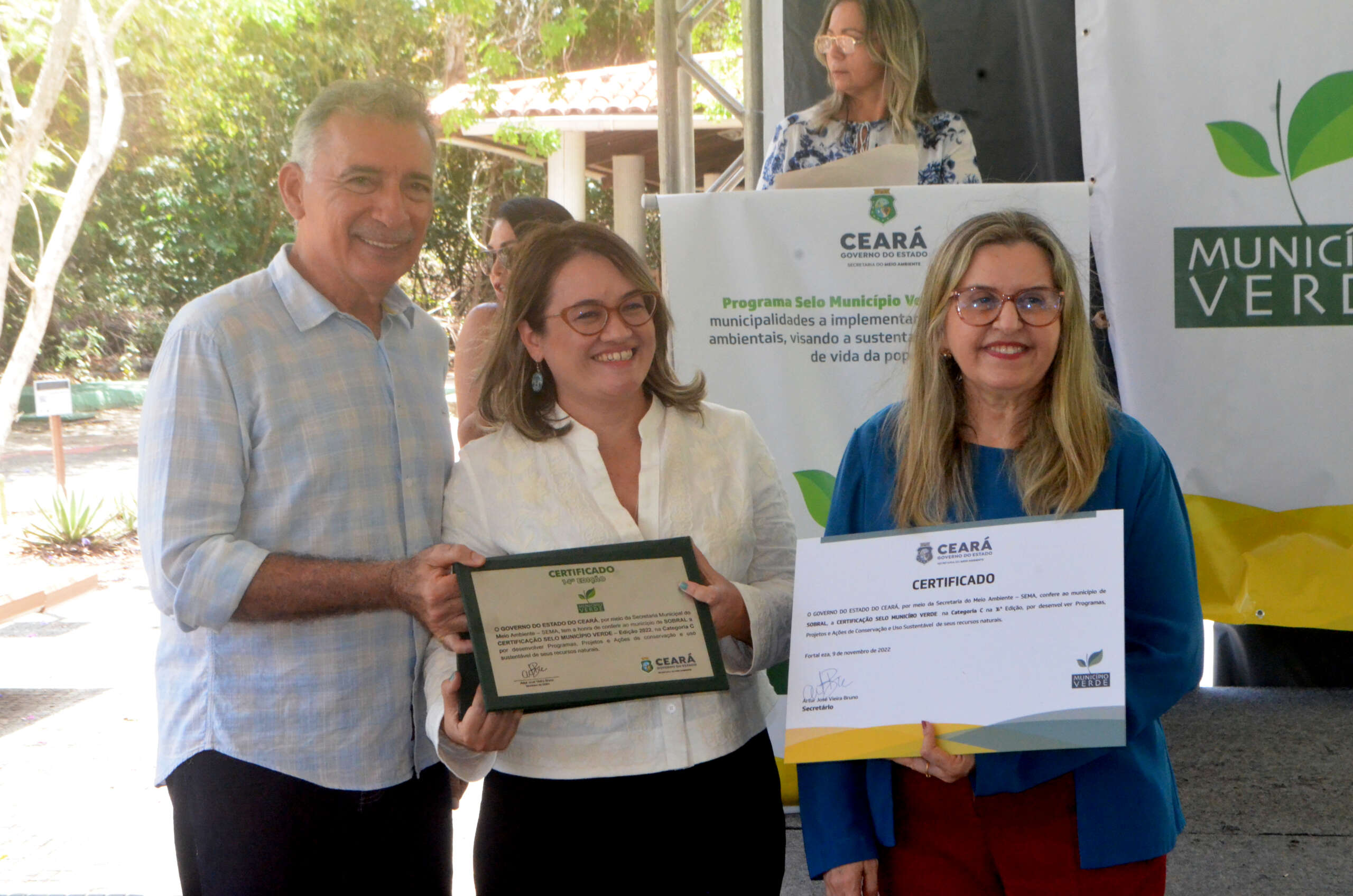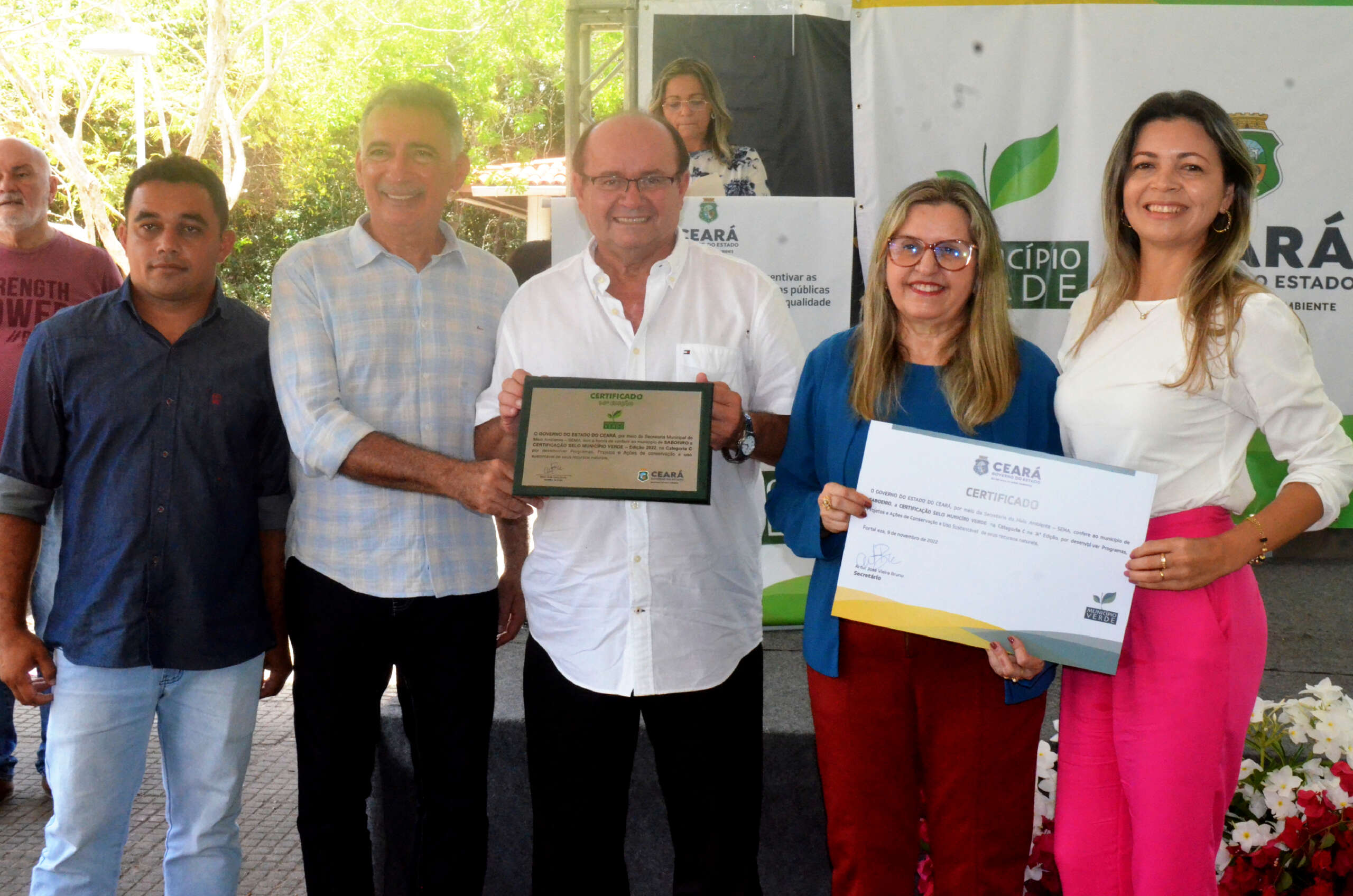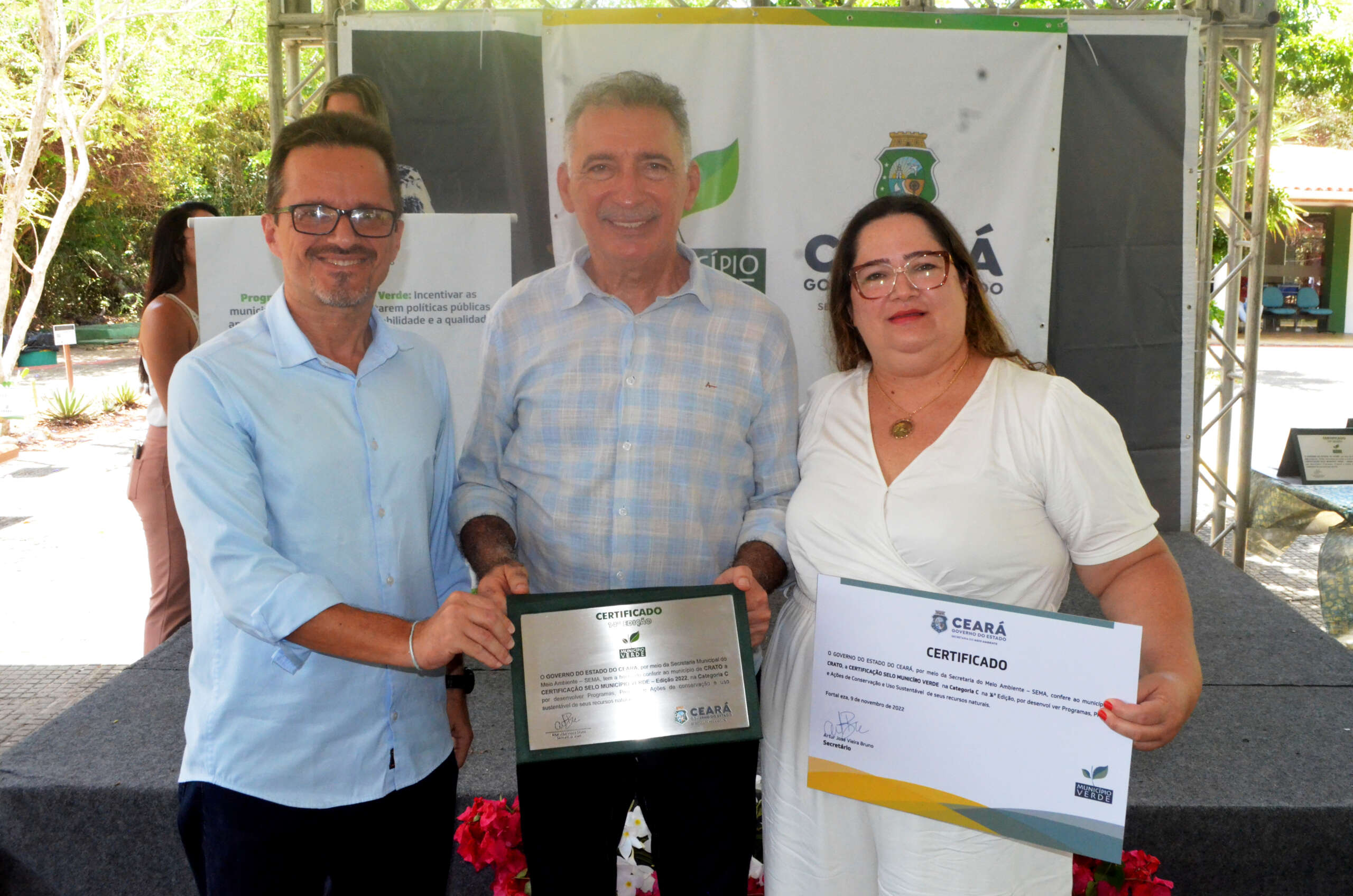 Em solenidade que ocorreu no Parque Estadual Botânico, em Caucaia, o governo do Ceará, por meio da Secretaria Estadual do Meio Ambiente (SEMA), entregou, nesta quarta (9), pela manhã, a Certificação Ambiental Selo Município Verde a 26 municípios classificados, na sua 14ª Edição. O evento teve o apoio da CAGECE.