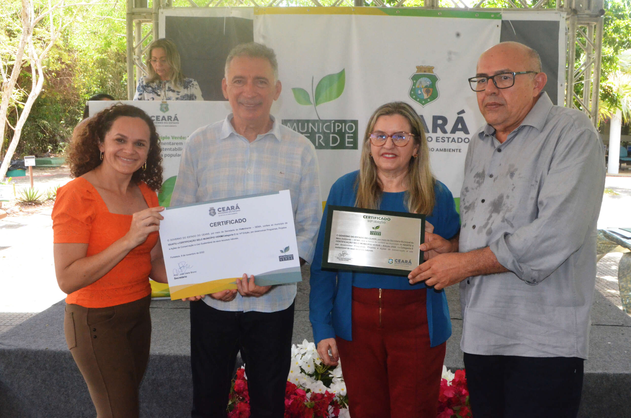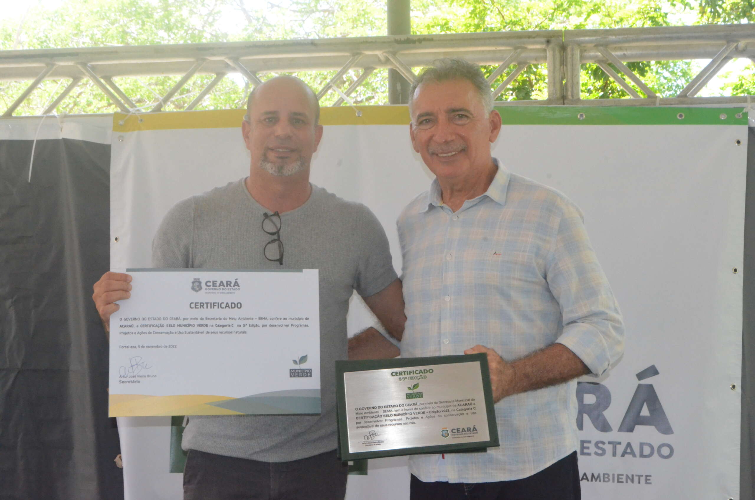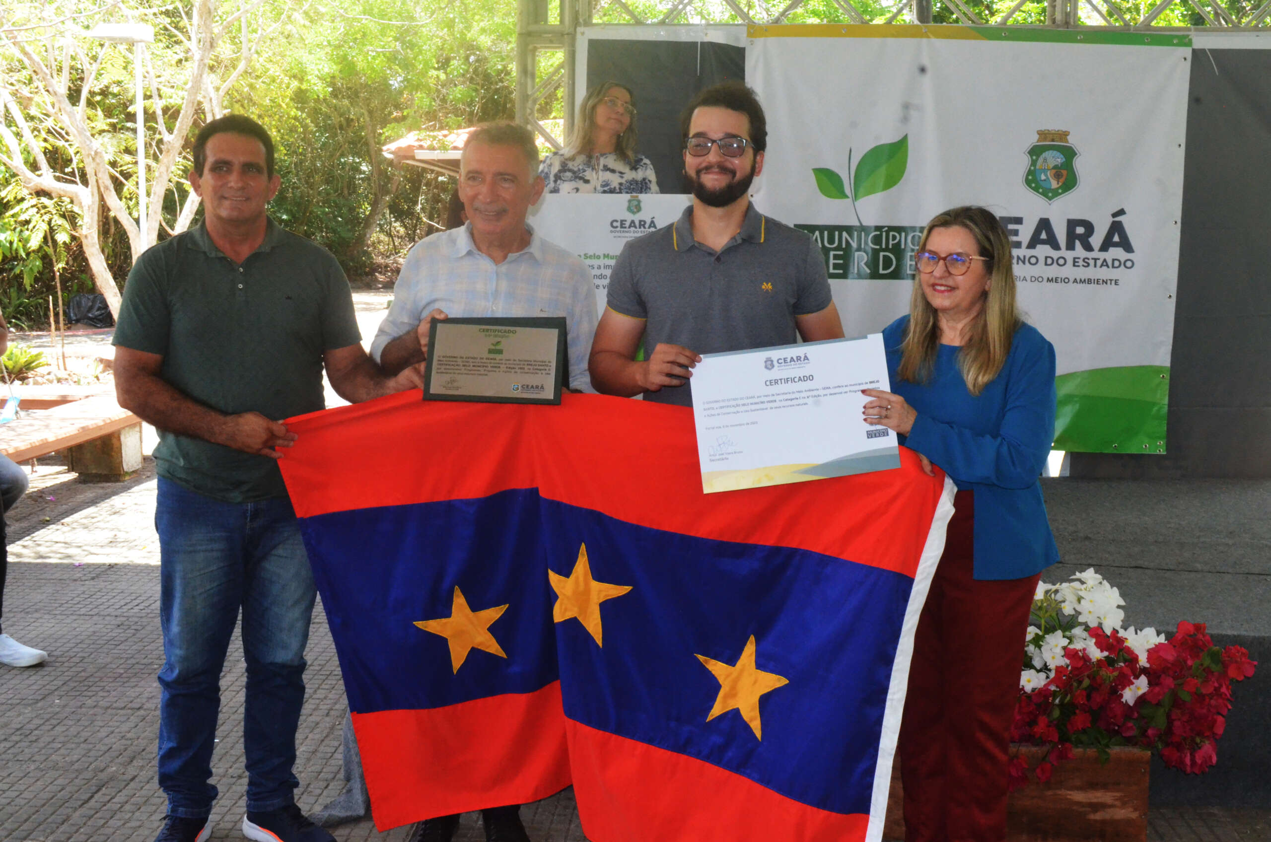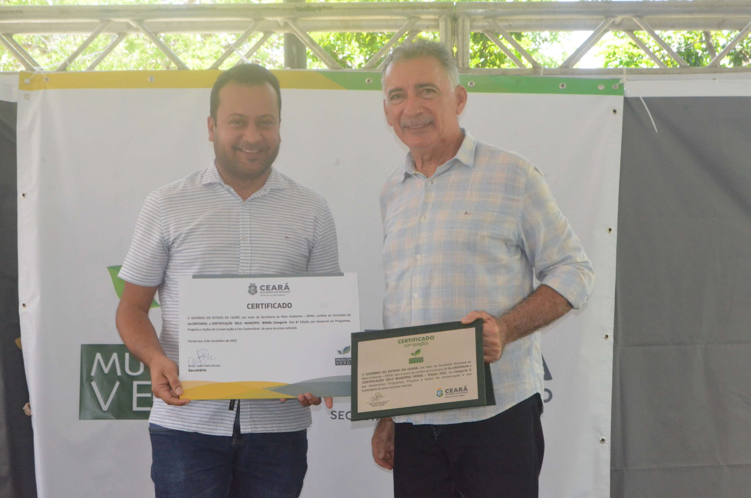 Em solenidade que ocorreu no Parque Estadual Botânico, em Caucaia, o governo do Ceará, por meio da Secretaria Estadual do Meio Ambiente (SEMA), entregou, nesta quarta (9), pela manhã, a Certificação Ambiental Selo Município Verde a 26 municípios classificados, na sua 14ª Edição. O evento teve o apoio da CAGECE.