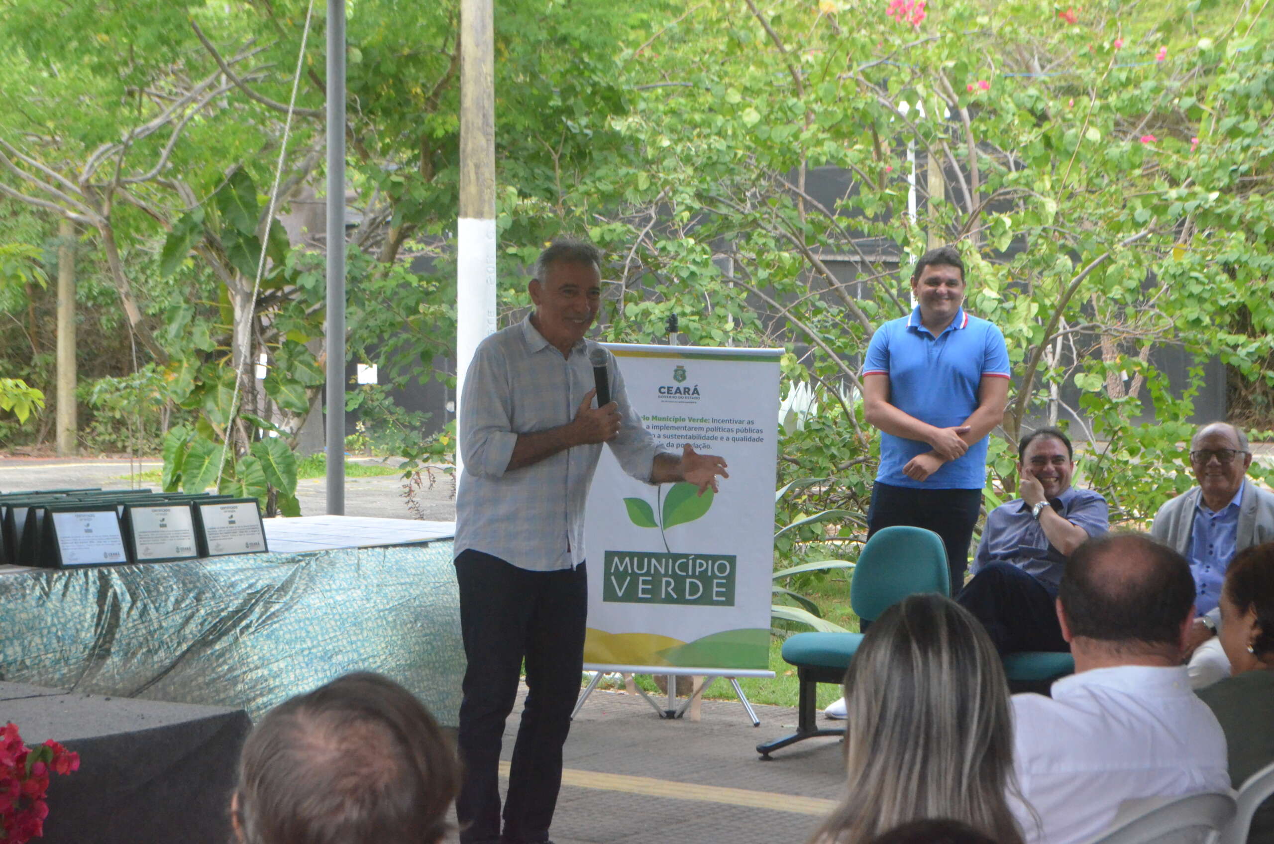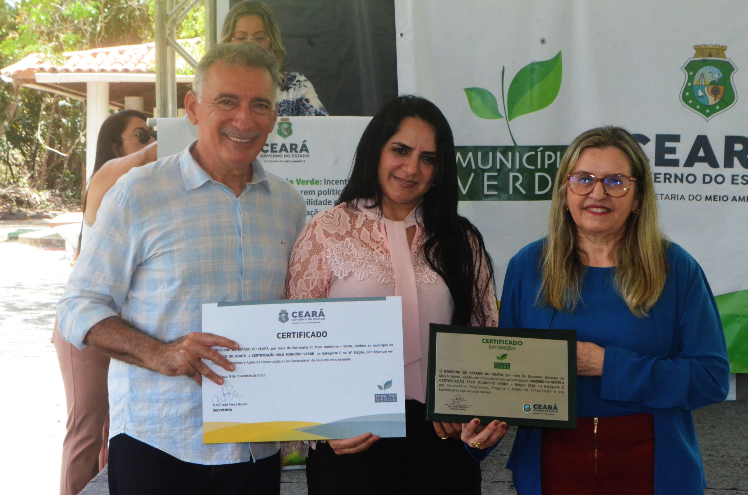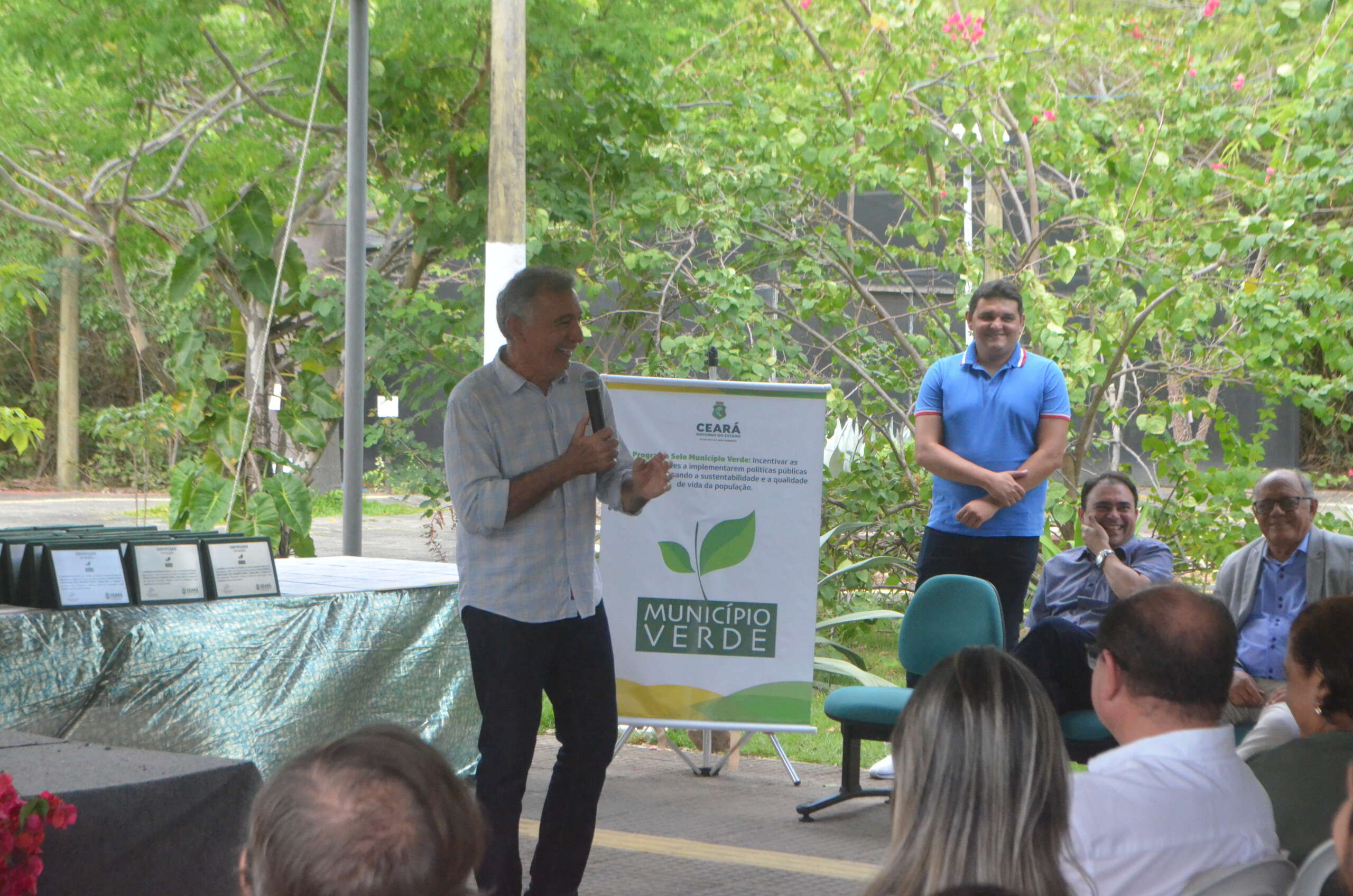 A mesa foi composta pelo secretário do Meio Ambiente do Ceará, Artur José Vieira Bruno; pela superintendente adjunta da Semace, Virgínia Carvalho; pelo representante da Associação dos Municípios do Estado do Ceará (Aprece), Expedito Nascimento; pelo presidente da Associação dos Gestores Ambientais do Estado do Ceara (Agace), Elano Damasceno; pelo representante do Comitê Gestor do Selo Município Verde, José Iramilson Costa Pereira (Iran); gerente do Parque Estadual Botânico, George Feijão; Ronald Fontanele, coordenador da CAOMACE. Também presentes, prefeitos, secretários e autoridades dos municípios premiados, além do superintendente do BNB, Lívio Tonyatt.