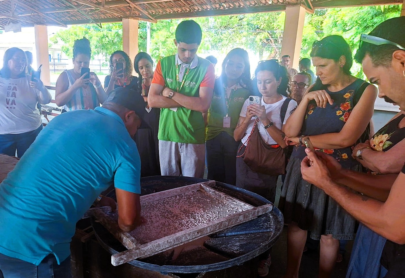 Alice Melo, uma das AJAs presentes, comentou sobre a importância da atividade: “Essa atividade foi muito importante para nós, AJAs, porque tivemos a oportunidade de conhecer de perto o funcionamento de uma casa de farinha, desde o processo de produção até a organização do trabalho. Também entendemos melhor o valor da agricultura familiar para a geração de renda e para o sustento de muitas famílias. Além disso, percebemos como as práticas ambientais corretas fazem toda a diferença para garantir uma produção mais sustentável e para cuidar do meio ambiente.”