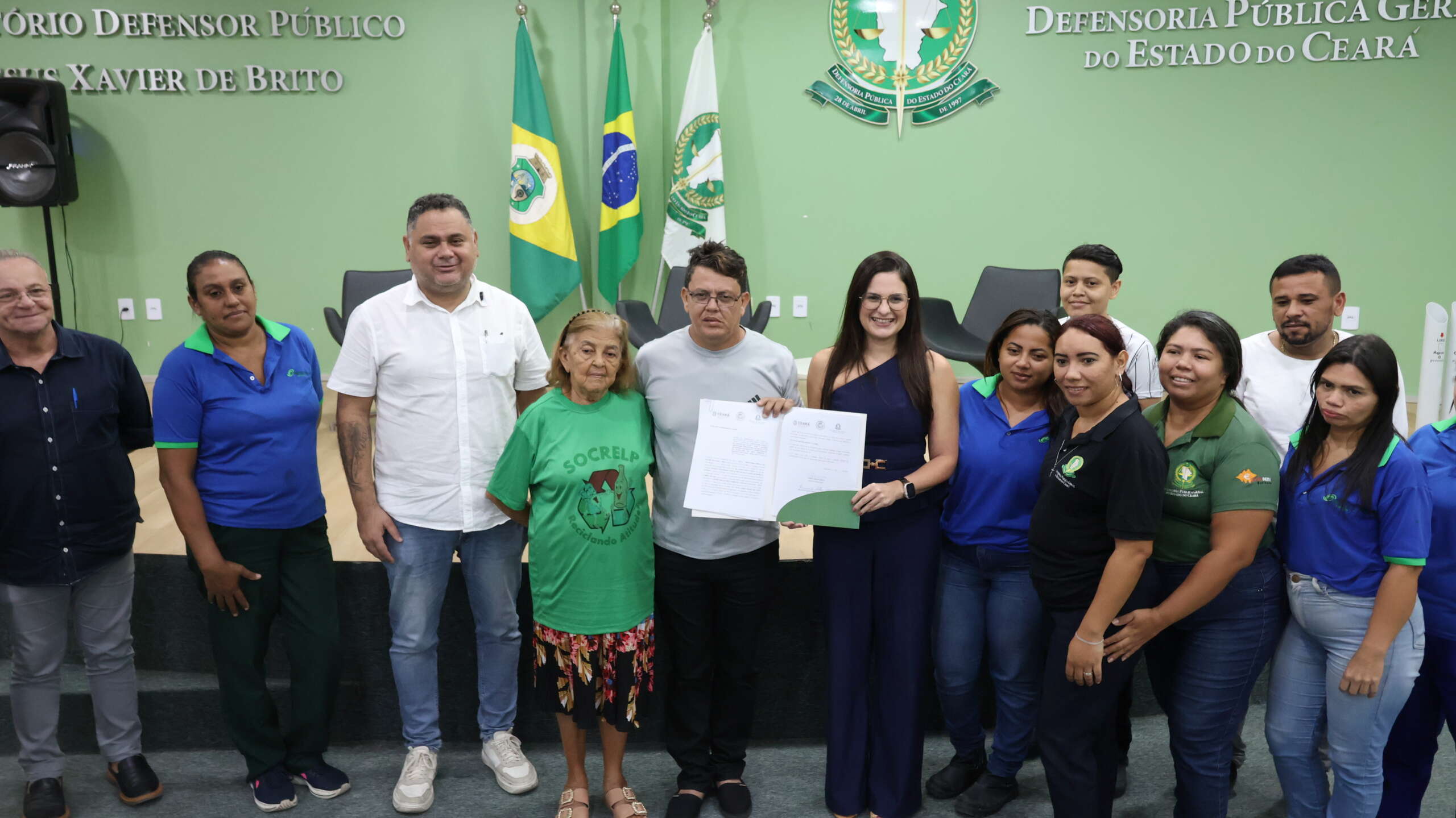 A solenidade realizadadia 27 de fevereiro no auditório da sede administrativa da DPCE, contou com a presença da defensora pública geral, Sâmia Farias; do coordenador de Mudanças Climáticas da Sema, José Wilker Sales; e do presidente da Socrelp, Francisco das Chagas Cabral de Lima. A iniciativa integra o projeto interno “Defensoria Verde” e passa a incorporar, de forma estruturada, a coleta responsável de resíduos recicláveis produzidos na sede administrativa.