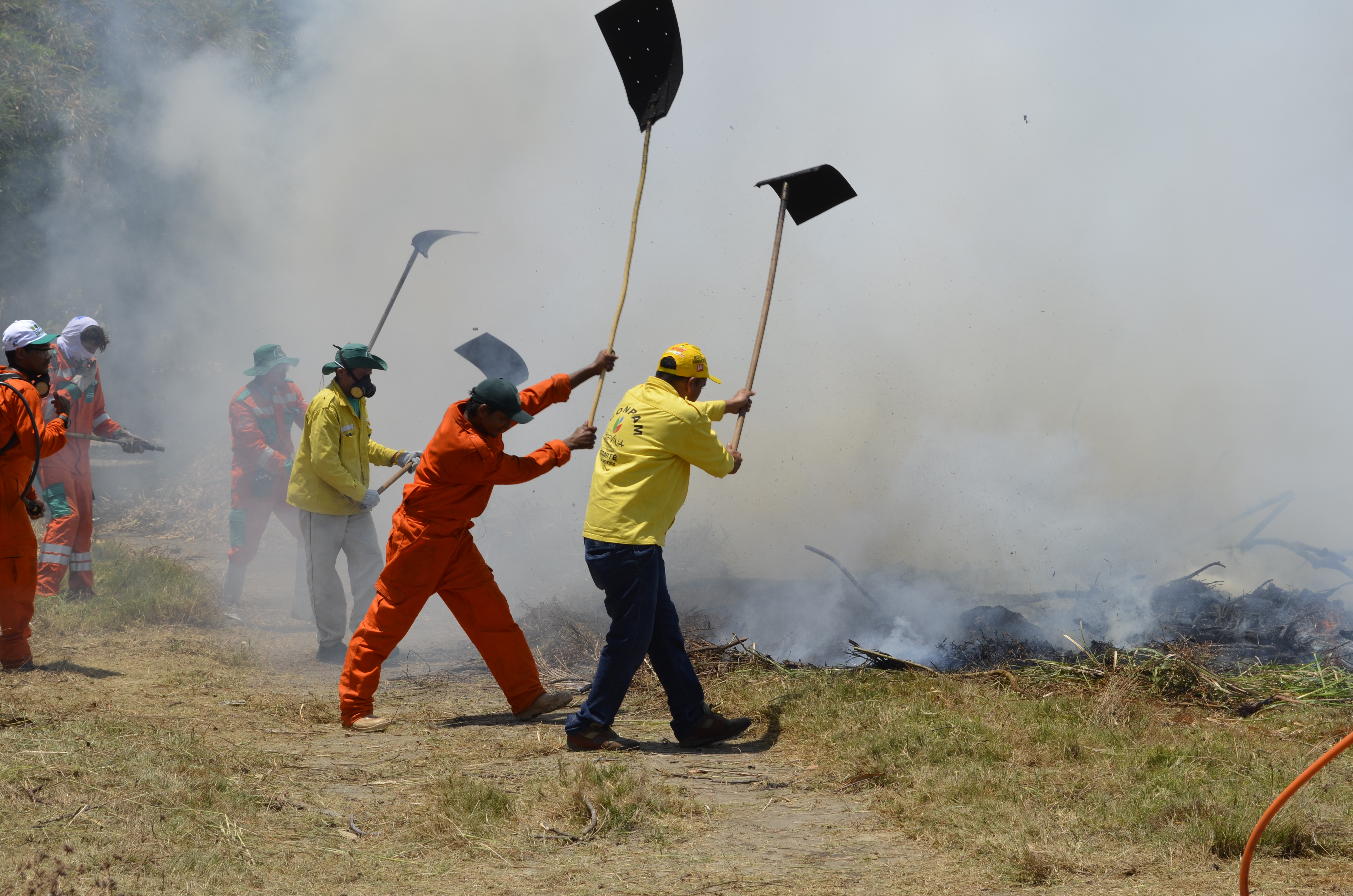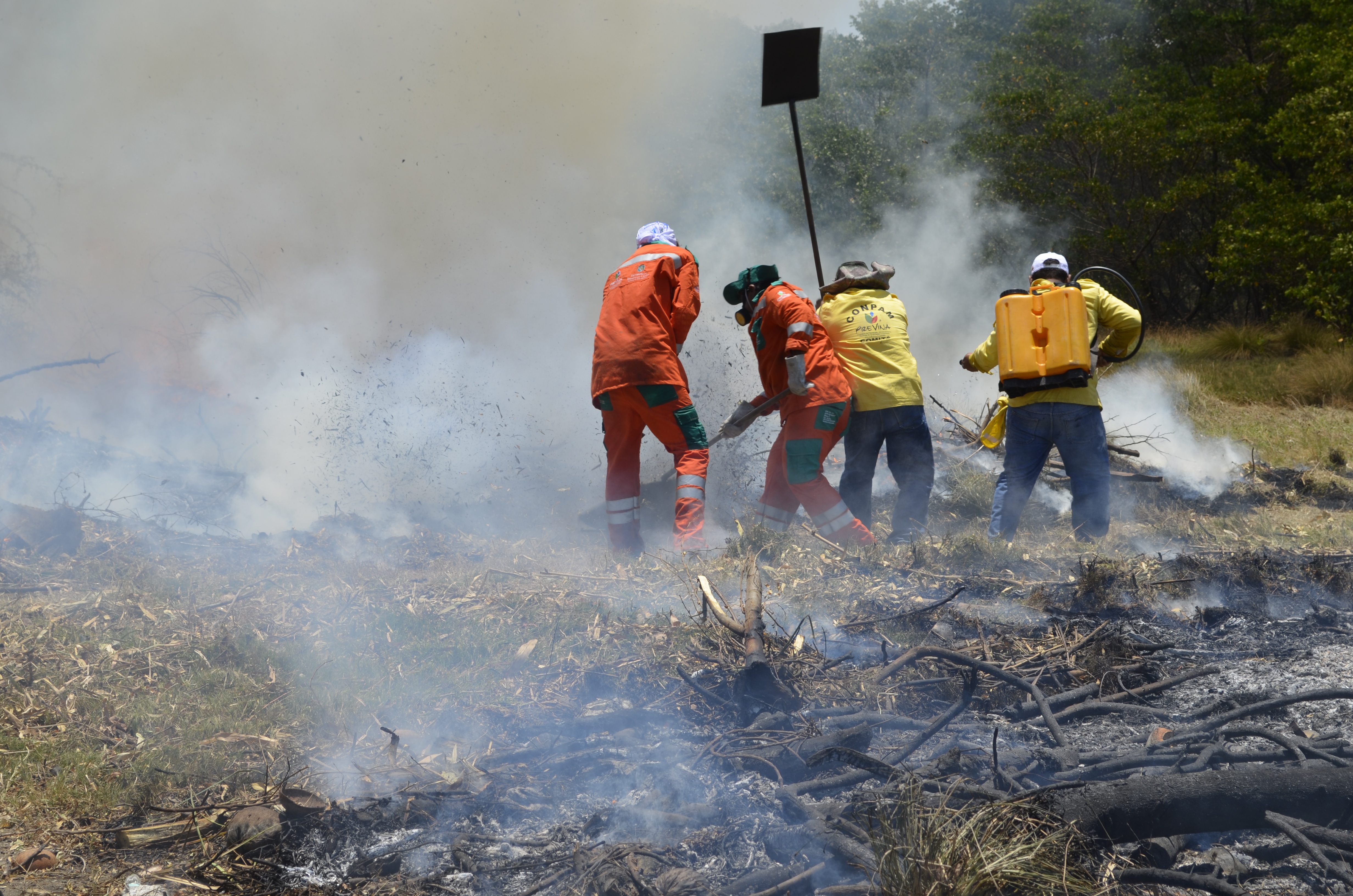 – Técnicas de Combate a incêndios florestais: combate direto com uso de abafador, bomba costa, pinga fogo, motobomba, motosserra, etc.